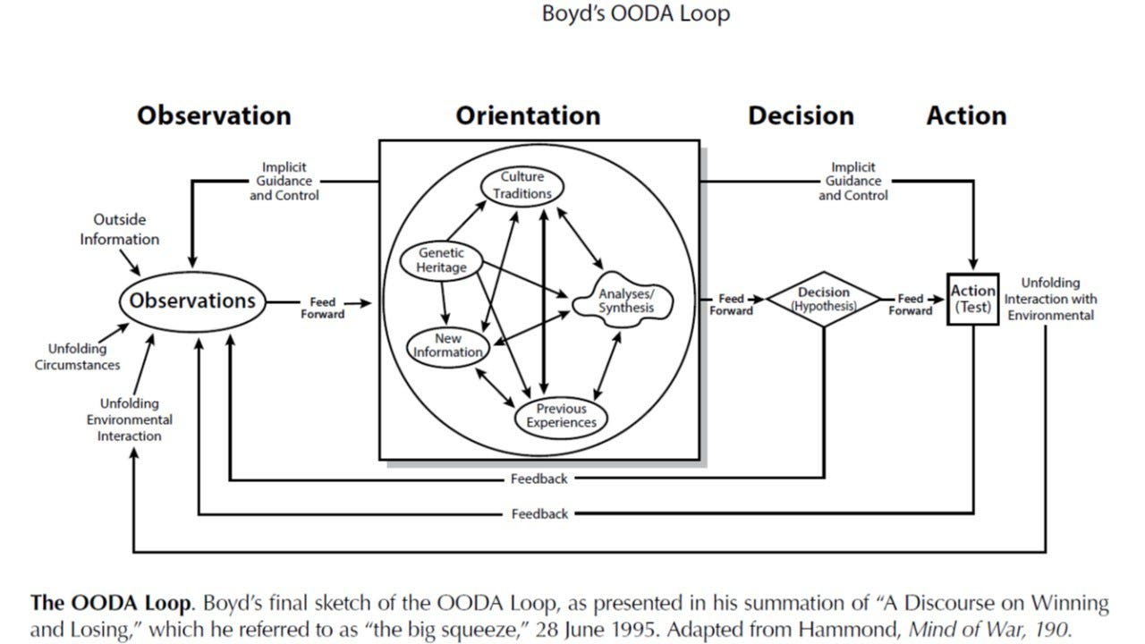 The thing that Boyd is famous for is the OODA loop. Lets break it down.